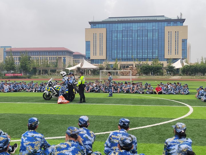 9月16日上午,长清区公安分局宣传科民警、交警大队民警庞漪及顺兴路派出所民警走进学院操场,为大一新生带来了一场别开生面的安全教育课。