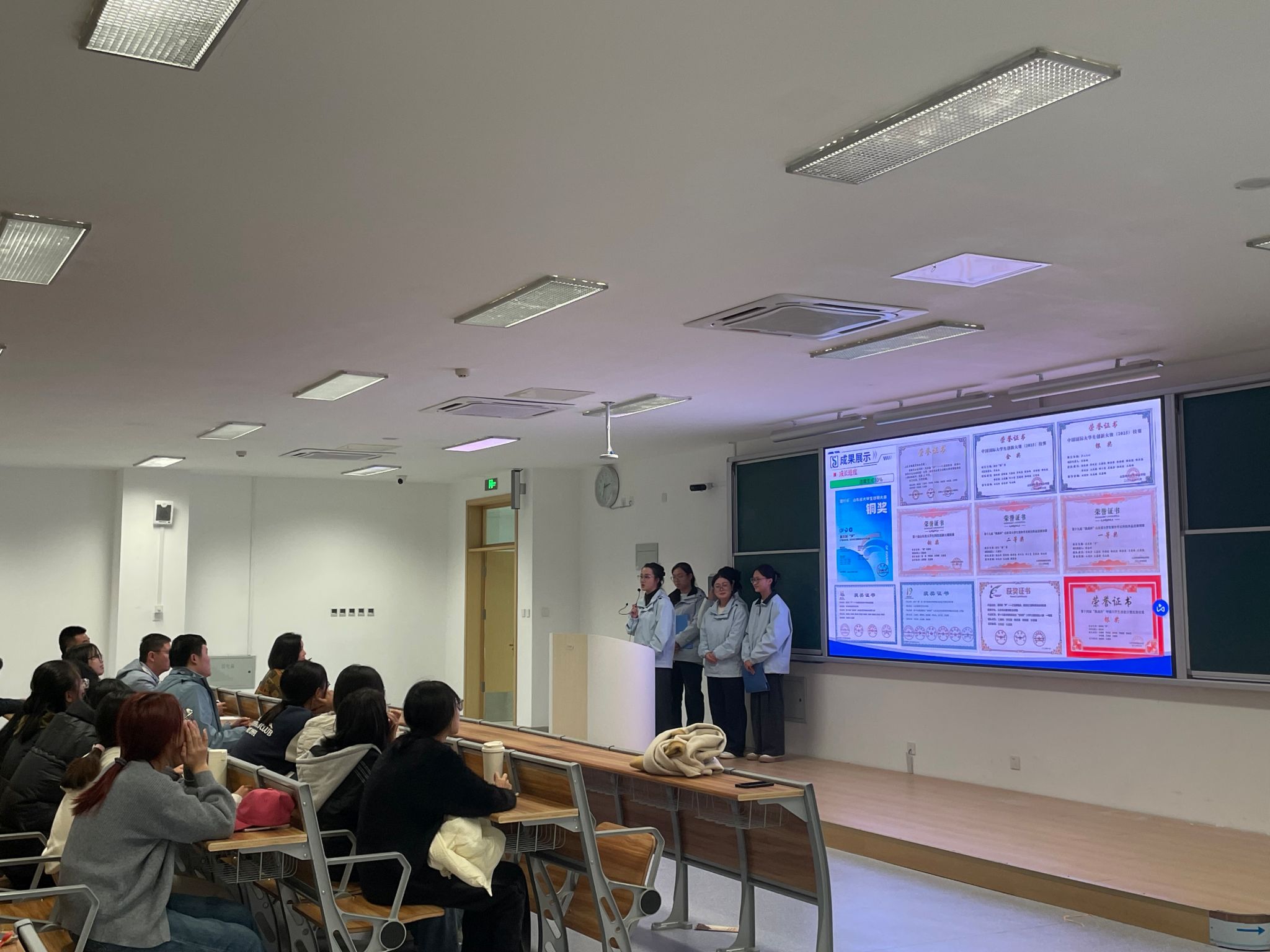 各项目团队的分享字字珠玑。从灵感萌芽到方案落地的艰辛与坚持,从聚焦社会需求、将爱心与创新结合的实践路径,到参赛中的细节把控与心态调整,从备赛时的熬夜打磨、答辩中的临场应变、失利后的复盘总结,到获奖时的并肩欢呼。真实的体悟引发全场强烈共鸣,实用的技巧让同学们直呼“收获满满”,掌声一次次响起,互动提问氛围热烈。青春向上的活力、敢闯敢创的劲头、奋发有为的担当、赶学比超的传承,在这一刻明艳闪亮,同学们参与创新创业活动的热情愈加高涨。