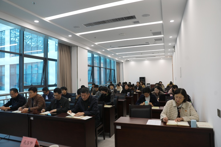 10月29日下午,学院党委理论学习中心组进行十月份(扩大)集体学习,专题学习党的二十届四中全会精神,学院党委书记杨磊主持会议。党委理论学习中心组成员,党支部书记、委员及各处室、系部负责人参加学习。