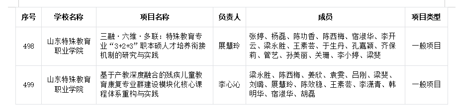 系部成功获批两项山东省2025年度职业教育改革课题。《三段•六融•多联:特殊教育专业“3+2+3”职本硕人才培养衔接机制的研究与实践》《基于产教深度融合的残疾儿童教育康复专业模块化核心课程体系重构与实践》。