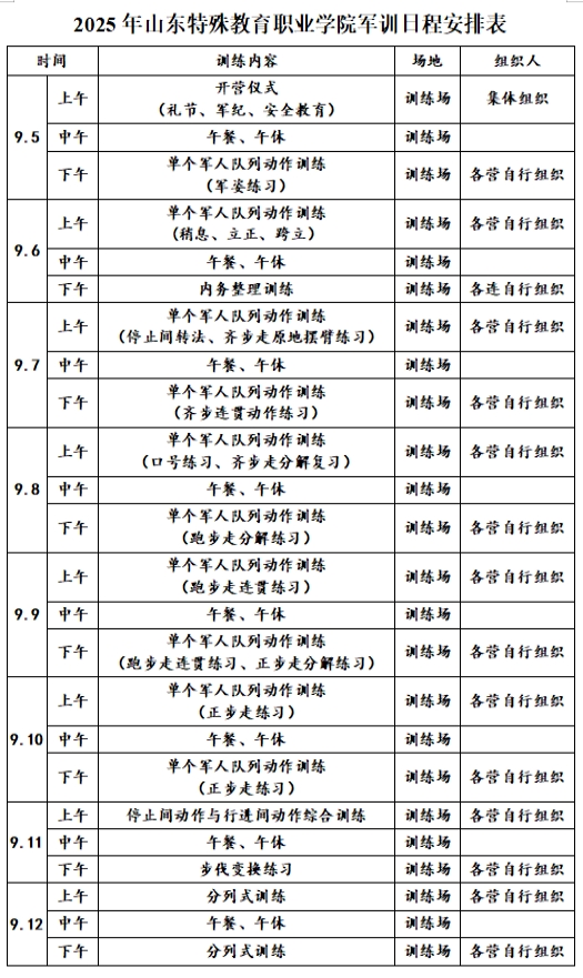 健全生方队同步强化协同:与健全生方队教官保持每日沟通,聚焦纪律养成、动作规范等重点,结合学生特点细化训练要求,确保两个方队训练既符合学院标准,又兼顾各自实际。