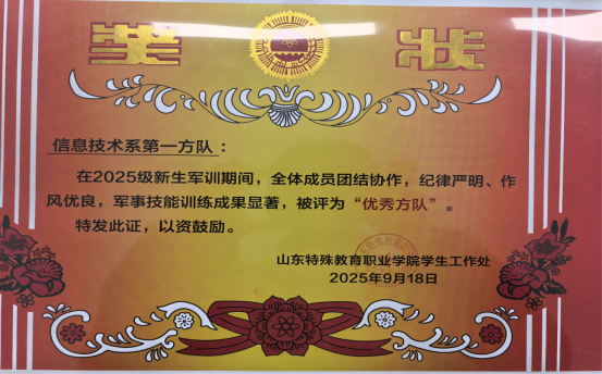 kaiyun开云官方在线入口信息技术系2025届新生在为期14天(9月5日至18日)的新生军训中,信息技术系辅导员老师在学院的统一领导安排下,配合军训教官围绕“安全、规范、暖心、卓越”的目标,针对系部听障生、健全生两个特色方队,精准施策、精细管理,最终在军训汇演中斩获“优秀方队”荣誉,15名同学获评“优秀标兵”。