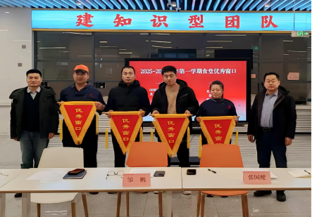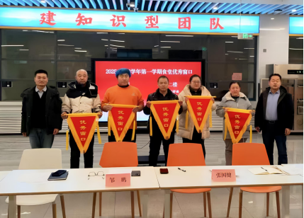 会议伊始,张国健处长通报了2025-2026学年第一学期食堂优秀窗口评选结果,对本学期在食品安全、服务质量、师生评价等方面表现优异的窗口予以表彰。随后,分别为一楼、二楼优秀窗口颁发流动红旗,获奖窗口纷纷表示将珍惜荣誉、再接再厉,以更优标准做好服务工作。此次表彰不仅是对优秀窗口工作的肯定,更营造了“比学赶帮超”的良好氛围,为后续餐饮服务升级注入了动力。