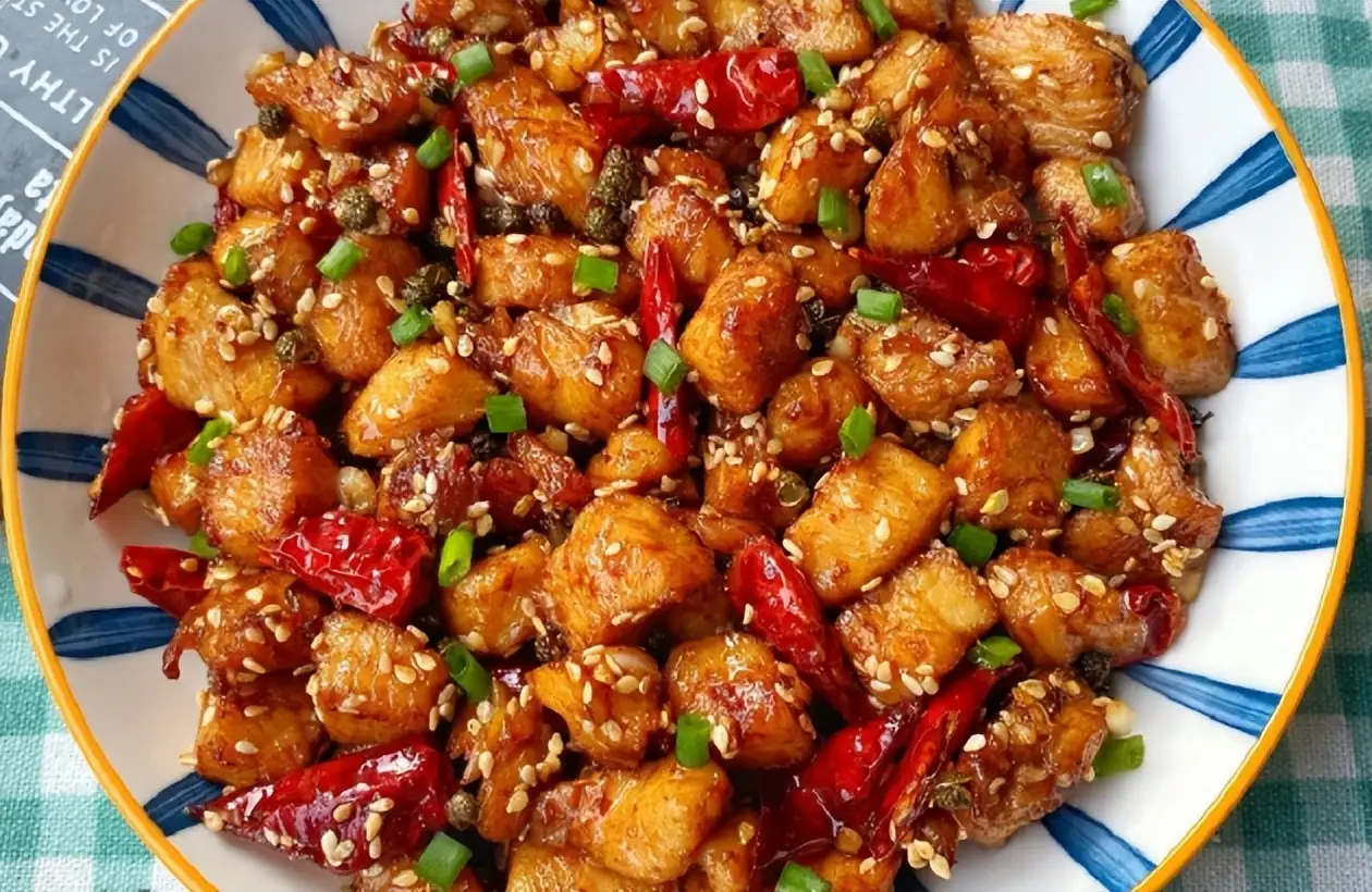 主要食材:鸡胸肉,葱姜蒜,干辣椒,花椒,芝麻。