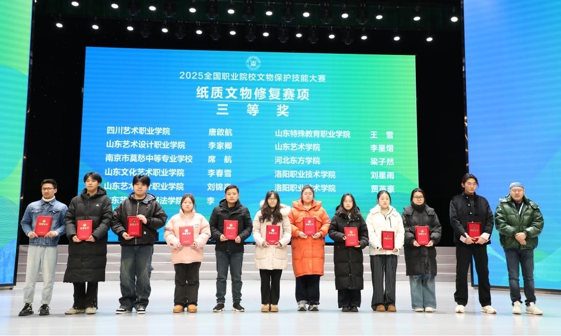 12月19日至21日,2025全国职业院校文物保护技能大赛举办。大赛汇聚了来自全国20所高校的76名参赛学生,围绕陶瓷器、纸质文物两个修复方向展开理论与实操的激烈角逐。学院艺术设计系文物修复与保护专业教师李傲指导学生李逢秋获陶瓷器修复组二等奖、教师马晓钰指导学生王雪获纸质文物修复项目三等奖,学院获评“优秀组织奖”。
