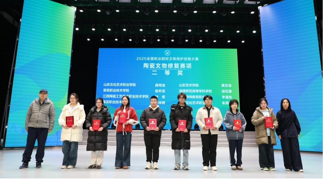 本次活动由全国文物保护产教融合共同体主办,莱芜职业技术学院承办。12月12日至14日,新时代文物职业教育高质量发展研讨会暨全国文物保护产教融合共同体2025年年会举办。活动现场发布了全国文物保护产教融合共同体教材建设委员会与课程建设委员会专家名单,学院艺术设计系文物修复与保护专业教师李傲入选“全国文物保护产教融合共同体教材专业委员会”委员。在全国文物保护产教融合共同体首届“课程思政集体备课会”中,学院文物修复与保护专业教师团队荣获三等奖,学院文物修复与保护专业学生王二许凭借精湛的技艺被授予“文物保护青年工匠人才”称号。