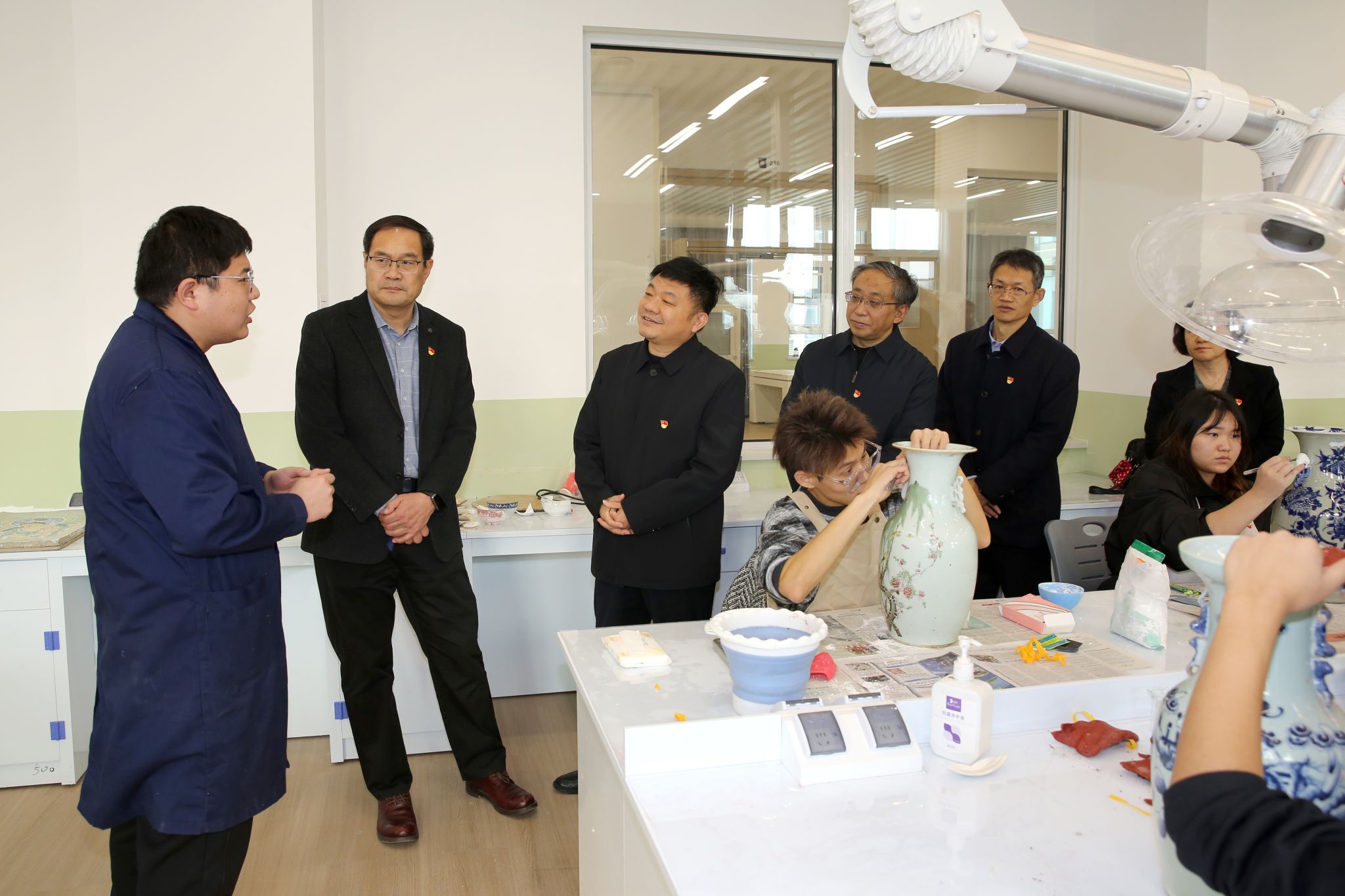 学习伊始,两校中心组成员共同参观了学院服装艺术系实训室、文物修复实训室、景泰蓝工作室及特殊教育系实训室,详细了解学院在传统工艺传承、技能培养、产教融合实践等方面的创新做法与育人成效。