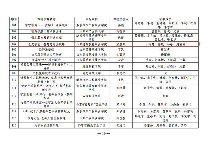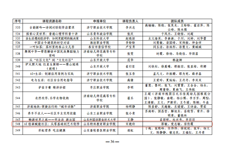 近日,山东省教育厅发布《关于公布2025年度社区教育优秀课程资源遴选结果的通知》(鲁教民函〔2025〕16号),学院共有8门课程成功入选。