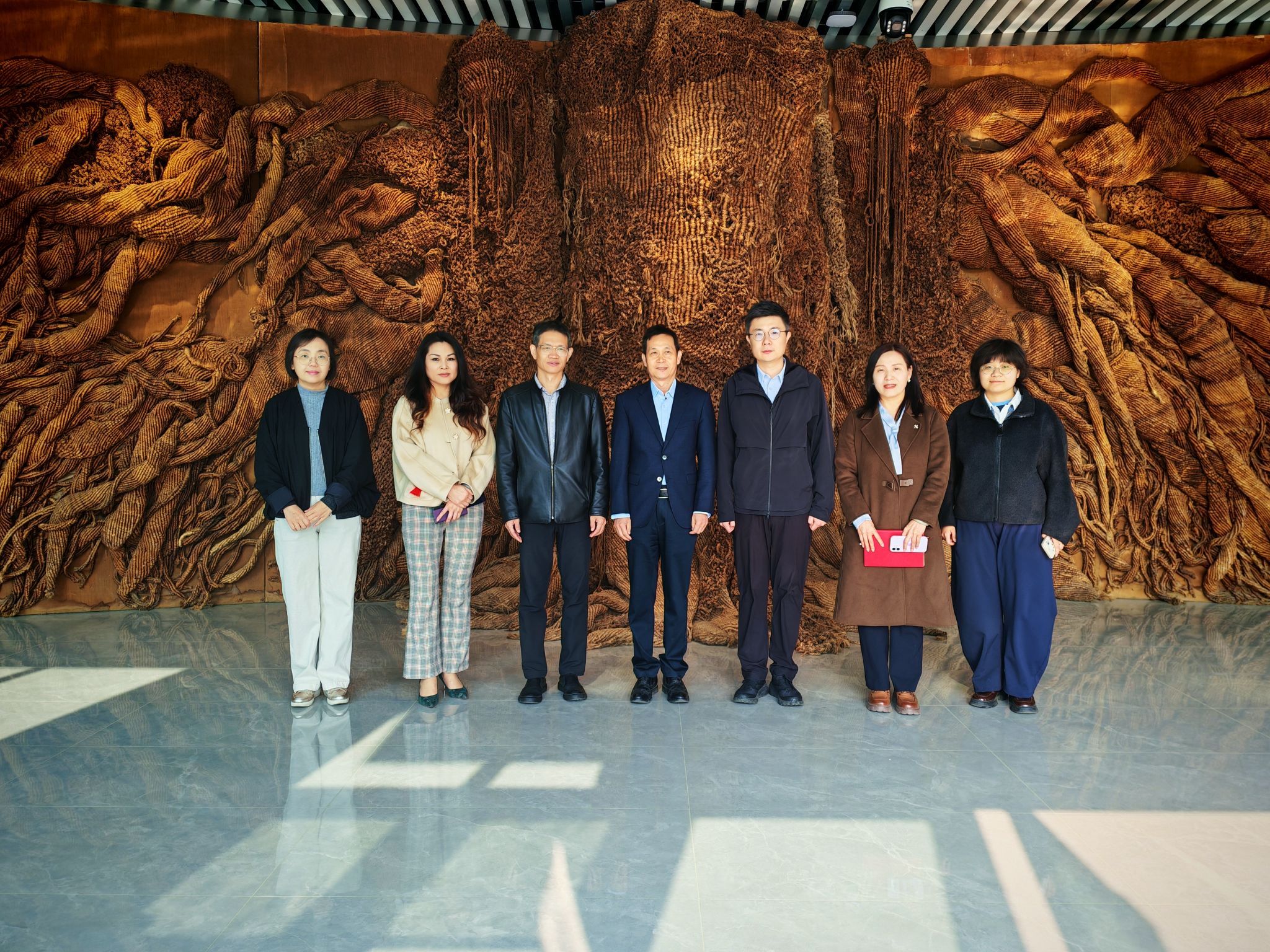 姚东方一行先后实地参观了学院大型纤维艺术作品《中华根》、文物修复与保护专业工作室、景泰蓝大师工作室以及艺术作品展馆,详细了解学院在非遗技艺传承、实践教学平台建设等方面的探索与成果。
