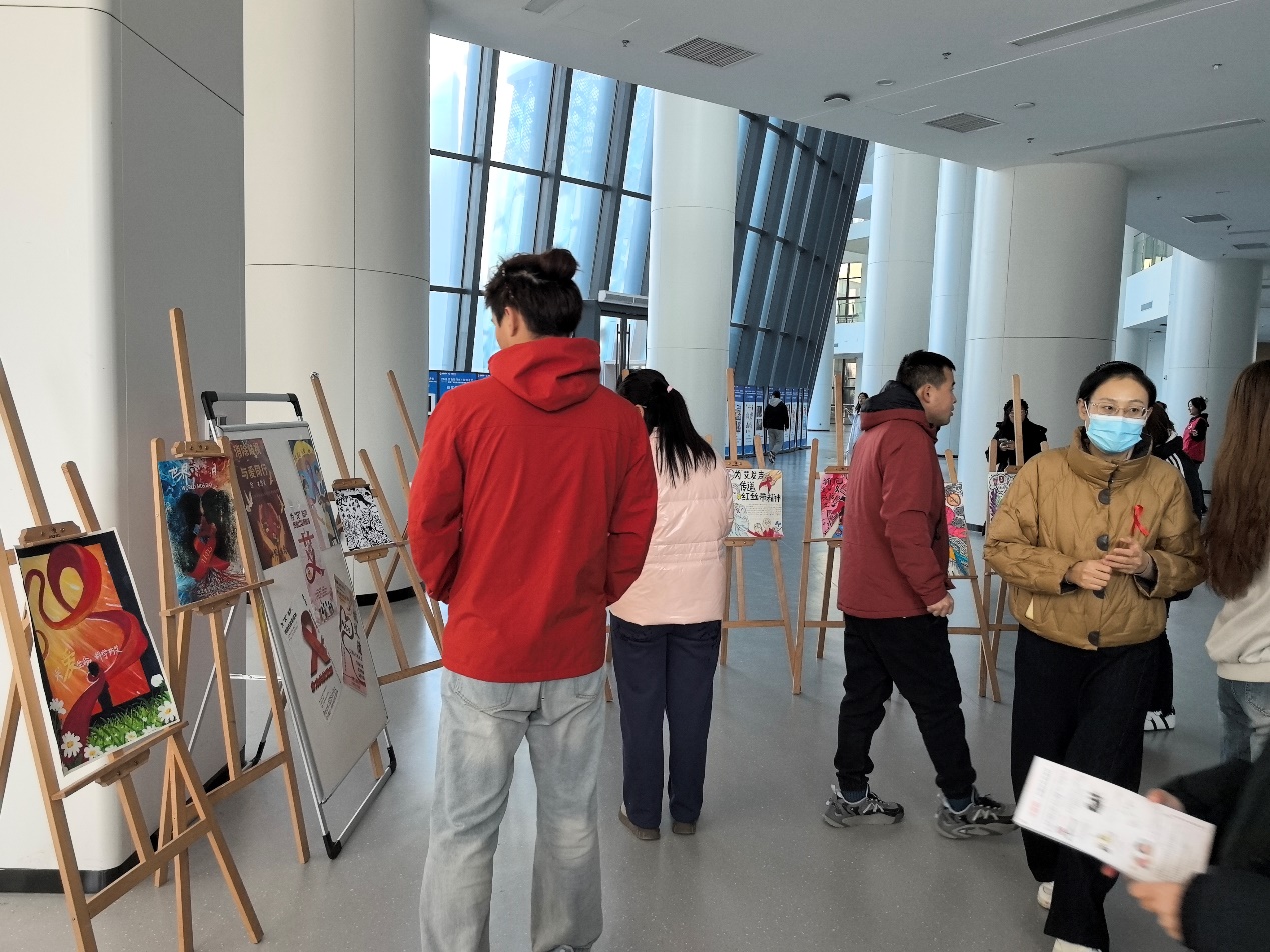 现场还展示了学院防艾主题海报设计大赛获奖作品。一幅幅作品用艺术的语言、鲜明的色彩生动地将防艾知识直观呈现,不少同学驻足观看、相互交流。这些作品直观形象地向公众传达了艾滋病的防护知识,传递了关爱艾滋病患者、消除歧视、携手共抗艾滋的美好愿景。一名参观展览的同学说,“这些海报让我对艾滋病防治有了更清晰的认识,尤其是‘消除歧视’的主题设计,让我深刻感受到关爱比疏远更有意义。”