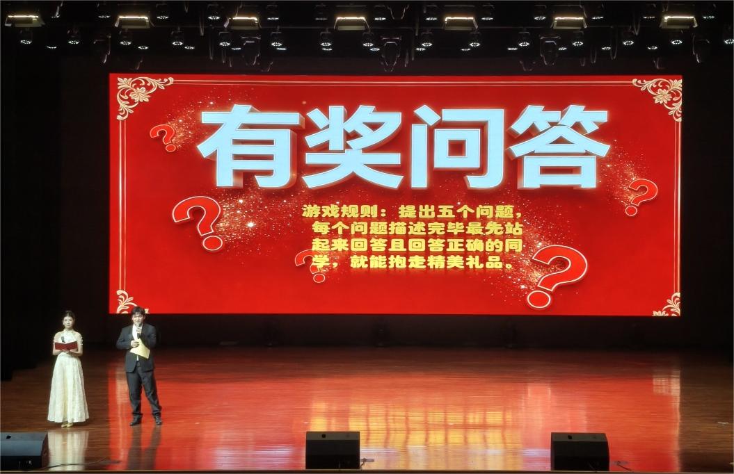 晚会特别设计的互动环节深度融合了系部专业特色与人文关怀。“有奖竞答”围绕宿舍安全、康复专业知识、无障碍设施及特殊群体节日设题,寓教于乐,强化了学生的安全意识与专业认同。