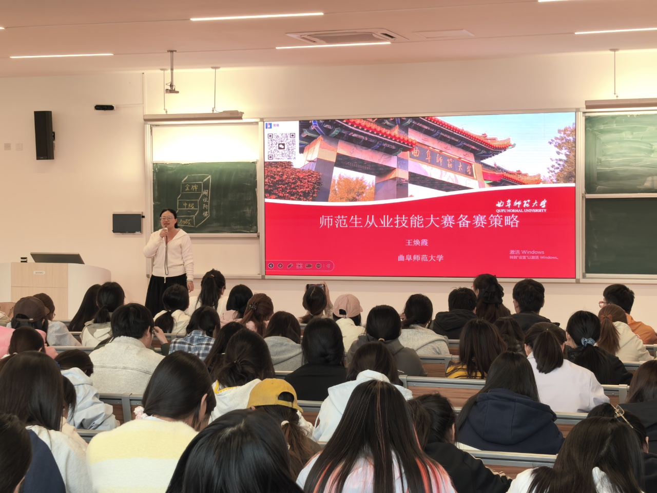 为深入贯彻习近平新时代中国特色社会主义思想和党的二十大、二十届历次全会精神,进一步提升师范类专业学生的教学基本素养与实践能力,助力第十四届山东省师范类高校学生从业技能大赛备赛工作,4月13日下午,公共教学部成功举办“师范生从业技能大赛备赛策略”专题讲座。本次活动特邀曲阜师范大学基础教育课程研究中心王焕霞教授、王志露博士担任主讲。公共教学部全体教师及师范类专业学生参加了此次活动。