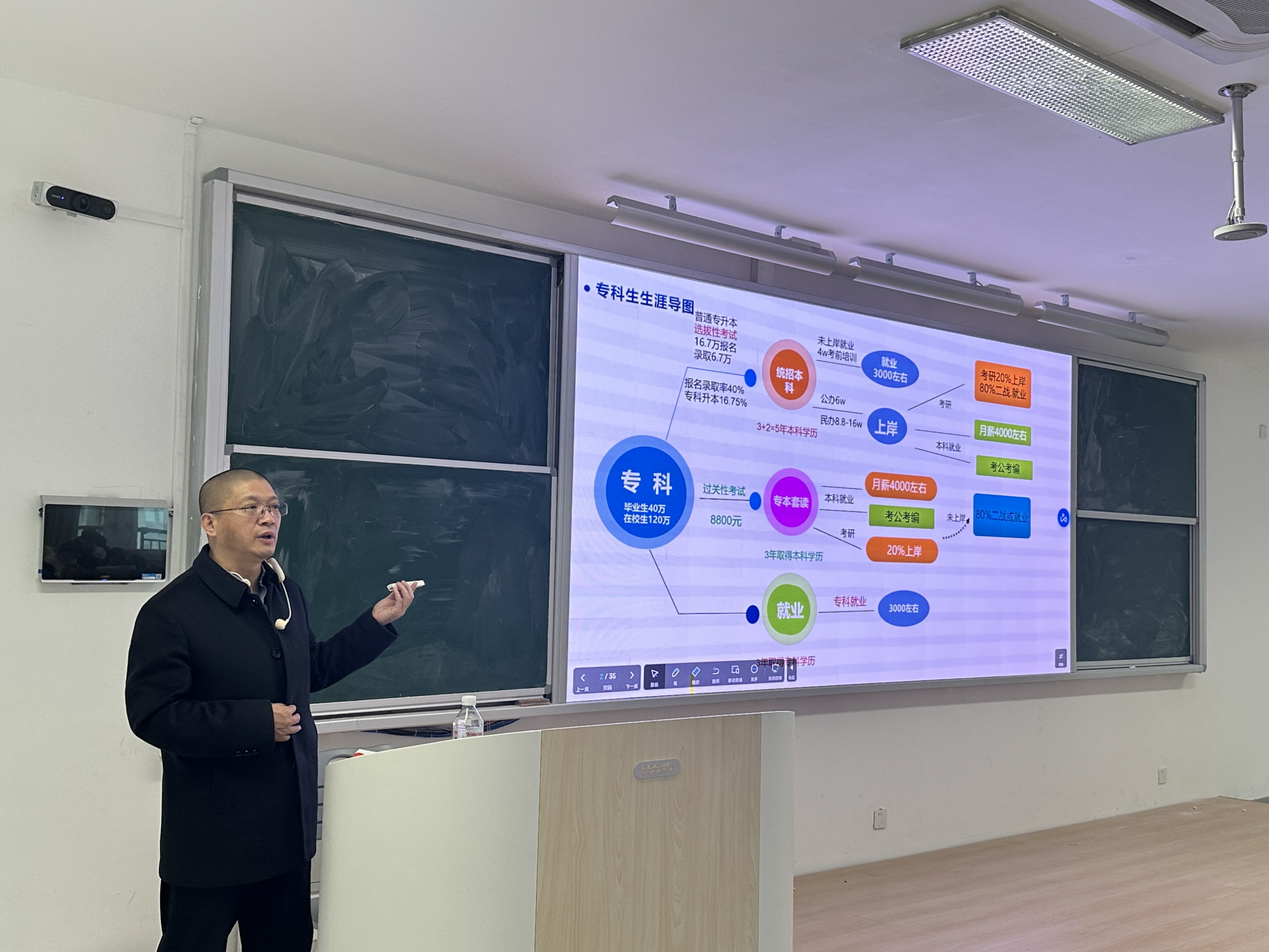 卢校长强调,当前就业形势严峻,学历提升不仅是知识与能力的积累,更是职业生涯可持续发展的重要支撑。他鼓励同学们根据自身兴趣、专业方向、时间安排与经济条件,理性选择适合自己的升学方式,并尽早制定个人发展规划,比如自我评估定位、职业发展策略制定、技能提升等,把握升学与就业的双重机遇。