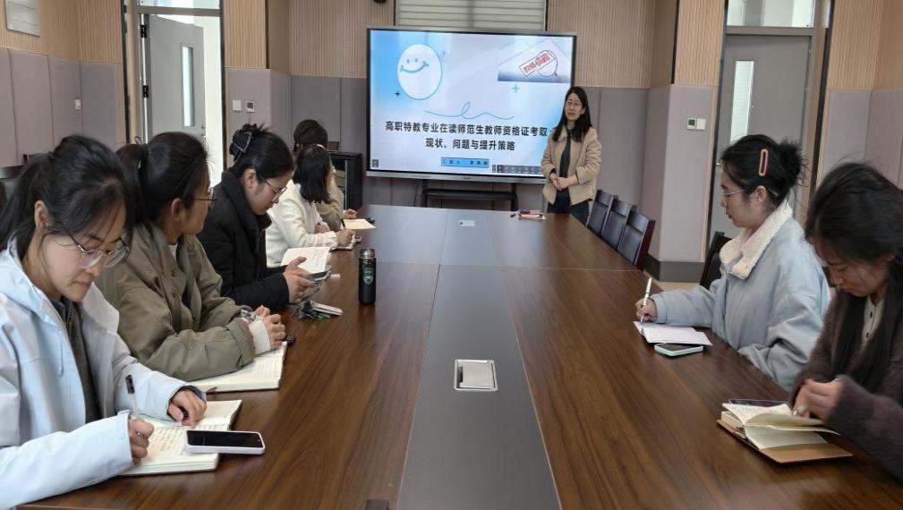 3月10日,陈西梅老师主持开展“高职特教专业在读师范生教师资格证考取:现状、问题与提升策略”专题研讨。会议深入剖析了师范生备考过程中存在的普遍性问题,集体研讨形成系统性辅导与支持策略,旨在有效提升学生职业资格获取能力,为其未来从教生涯奠定坚实基础。