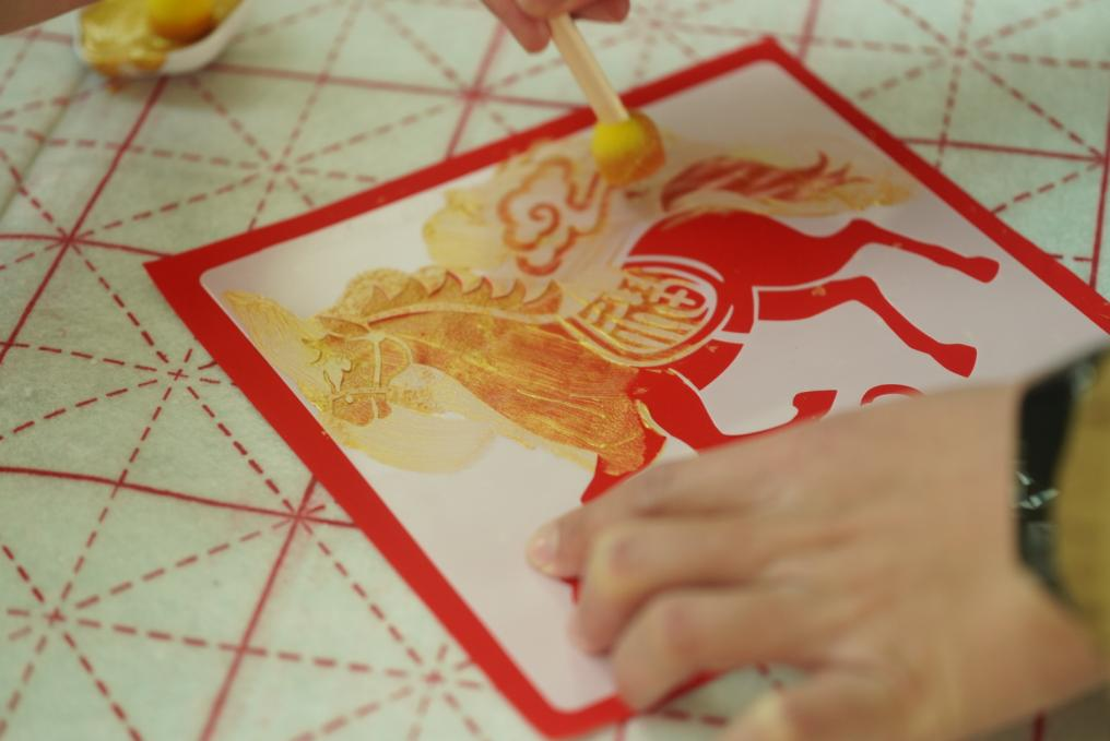 剪纸体验区里,红纸铺展、剪刀起落,师生们尽情发挥创意巧思,精心裁剪出迎年纳福的剪纸作品,在指尖创作中感受传统剪纸技艺的匠心巧思与独特魅力。