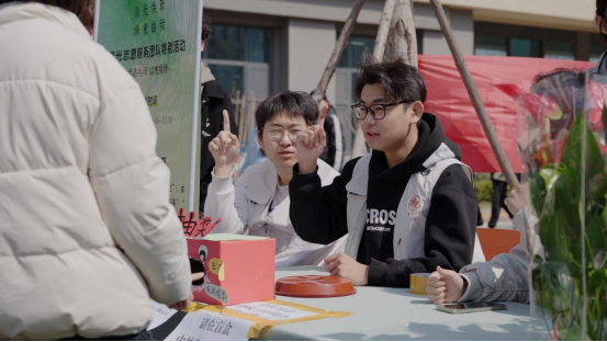 活动现场设置“手语小课堂”与“纸盒换绿植”两大特色摊位,“微光同行”的旗帜在春风中格外醒目。在“手语小课堂”,听障学生张雲斐等“小导师”耐心示范,带领同学们用指尖比划 “春天”“谢谢”“互助” 等词语。没有喧嚣的讲解,只有专注的目光交流、会心的微笑鼓励与学会后的击掌喝彩,无声的语言成为跨越隔阂的桥梁,让雷锋精神中的“平等”与“互助”具象化为指尖的温暖。